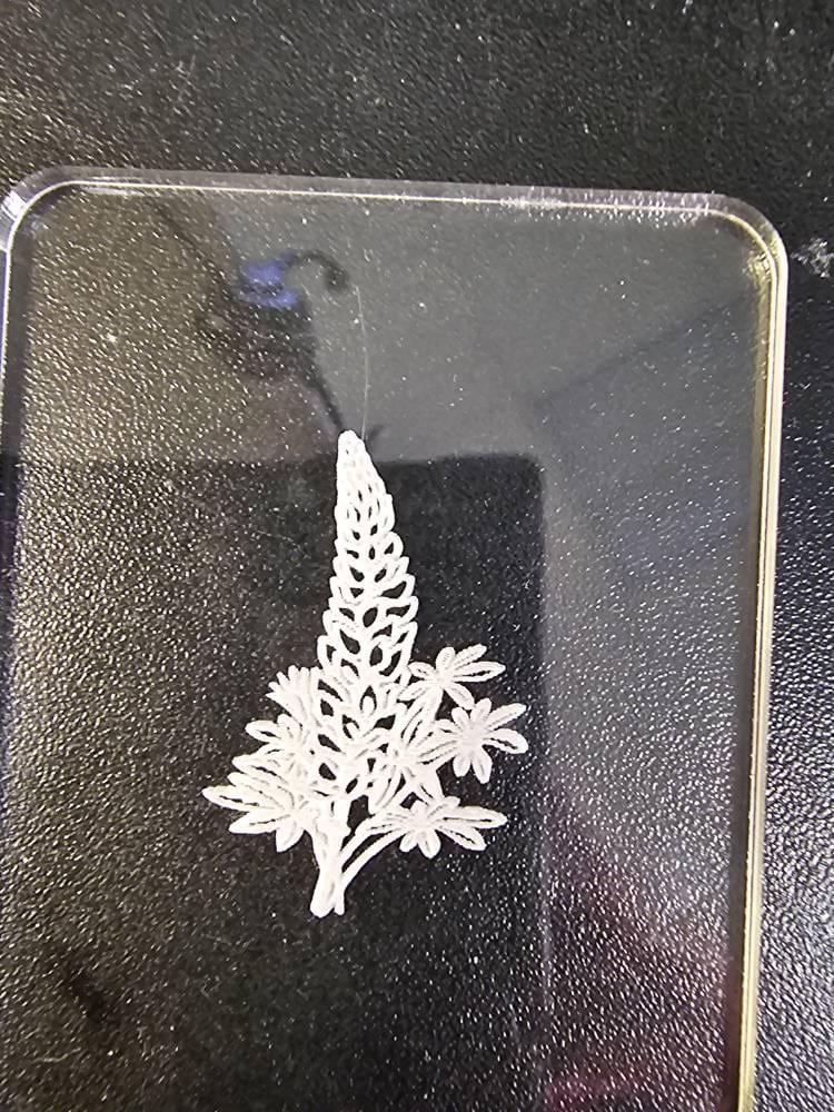 Design measures: 1.25" tall (.7" wide), and over all dimensions of the acrylic trays are 2" wide by 2.5" tall. When used correctly, acrylic will last a very long time and leave a smooth texture around the engraved design.
