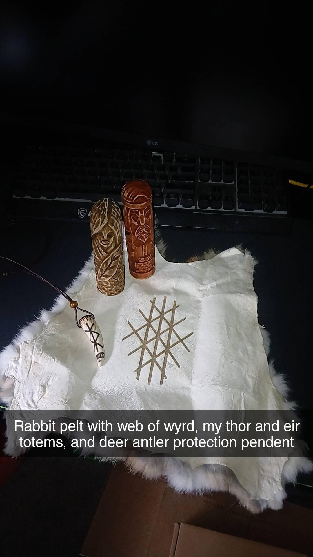 Unique altarcloth (I'll be using it for divination purposes). Well-crafted rabbit skin with wyrd rune burned into it by modern pyrography (lasers!).